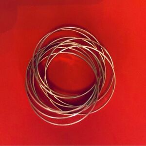 This elegant silver bangle bracelet adds a touch of sophistication to any outfit. Perfect for any occasion.