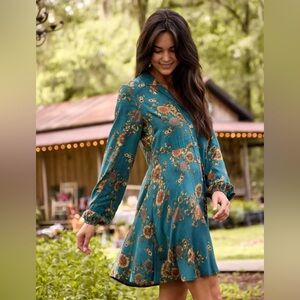 Elegant blue dress with floral design. Perfect for any occasion. Would fit a size 12-14 ideally but it is flexible with fit. It’s a loose smocked look with elastic for easy fit. The tie in front is decorative. Please see my other posts related to this dress. I have the exact dress in a child’s XL which fits an adult size 6-8 for a mother/daughter matching outfit. Selling separately or together. Please see other listings to buy both together. NWOT. Never worn or washed.