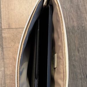 Sleek and stylish laptop sleeve with thick padding that can carry your laptop, think pad and a slim wallet. Perfect for everyday to elevate your style.