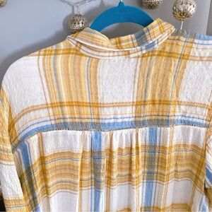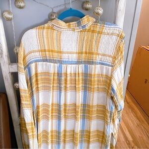 Anthropologie Pilcro Yellow Plaid Maxi Shirt with Side Splits. Size XL. Runs true to size. Buttons half way down the front. In excellent used condition: no flaws.