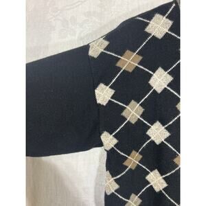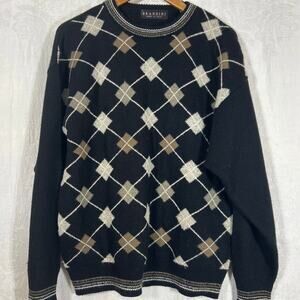 Vintage Brandini Sweater Large Black White Tan Argyle Crew Neck Wool Blend Italy
