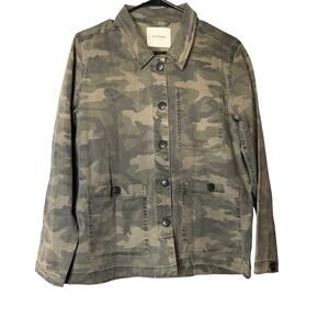 LUCKY BRAND Women’s Utility Jacket Small Green Camo Button Front Stretch Pockets