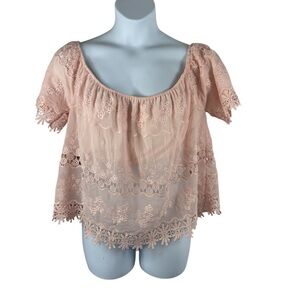 i Jeans by Buffalo light pink blush Lace Blouse, size L