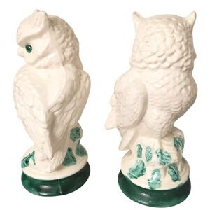 Gently Used...Owl Figurines Set...Color: White & Green...Height: 12"...Enhance your home decor with these elegant white owl figurines featuring green accents. Perfect for adding a touch of nature-inspired charm to any room…Note:Package Weight is 5 lbs. 9 ozs. = $10.95 Shipping...No Flaws...NICE‼️👌🏼