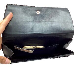1950s La Regale clutch black silk satin beaded sequined bag