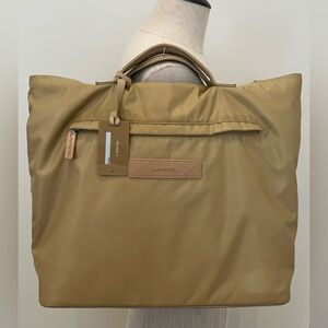 @c_levernier Hi, the bag is 14” wide by 16” tall by 5” front to back with a 10”long strap.