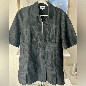 Ganni Textured Cloque Pleated Skirt Collared-Neck Mini Dress like new
