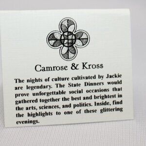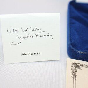 This is a beautiful bracelet from the Jacqueline Kennedy Collection by Camrose & Kross. It is marked JBK. The Engagement Bracelet is an exact replica of the bangle received by Jackie for her engagement to JFK and which she wore her whole life, eventually bequeathing it to her daughter Caroline. This is one of the significant anchors of Jackie's jewelry collection and was one of her most cherished items. It is rhodium plated and set with SWAROVSKI crystal elements. A beautiful work of art with hand-worked filigree. Bracelet is approx. 1/2" wide. Inside diameter is approx. 2-1/2". Original box and Certificate of Authenticity included.