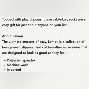 Anthropologie- Lemon Pom Cable Knit Socks
