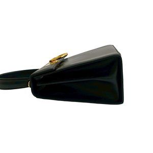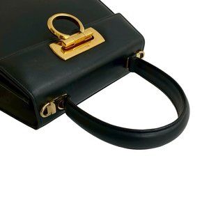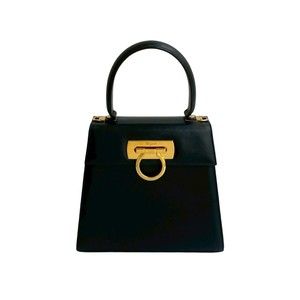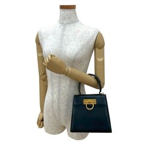 Salvatore Ferragamo Gancini hardware leather handbag tote bag in dark navy, 30715 - 18cm x 20cm / 7.08'' x 7.87''