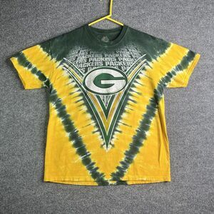 Green Bay Packers T-shirt Mens Large Tie Dye Green Yellow NFL Majestic