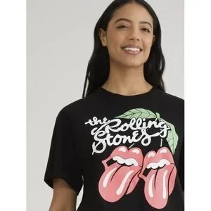 • Top Features: Pullover style; crewneck; short sleeves; Rolling Stones cherry lips logo graphic; soft jersey fabric