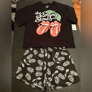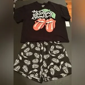 The Rolling Stones Women’s and Women’s Graphic Tee and Fleece Shorts Set Size S