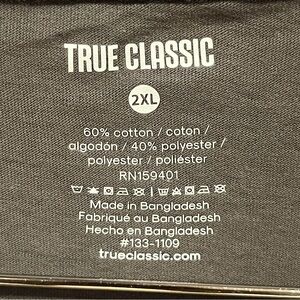 True Classic carbon gray V-neck short sleeve T-shirt. Perfect for casual wear. Cotton polyester jersey fabric. New with tags. Most items ship next business day.