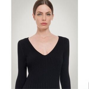 This chic black V-neck sweater offers a perfect blend of comfort and style. Ideal for any occasion, it features a sleek design that enhances your wardrobe. Brand new with tags, didn’t love the fit - not itchy at all super soft. A line shape