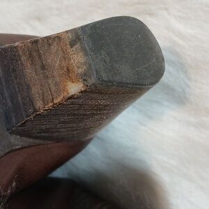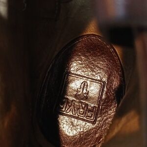 Chic Frye ankle booties in rich brown leather. Perfect blend of style and comfort. Scuffs and scratches. Heel shows wear. In great condition. Pre-owned