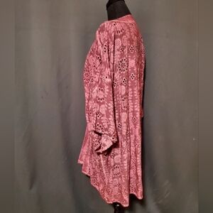 Lucky Brand Kimono features lightweight material with eyelet details throughout. Open front and 3/4 length sleeves.