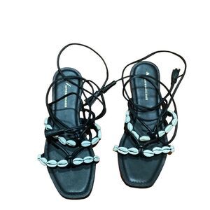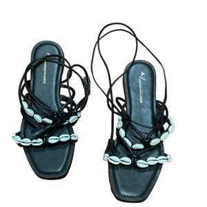 NEW Anthropologie Puka Black Leather Shell Sandals Ankle 8