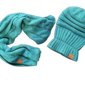 A pretty crotchet, teal scarf and beanie set. NWOT