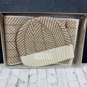 NWT Calvin Klein Gold and White Knit Hat and Scarf OS