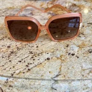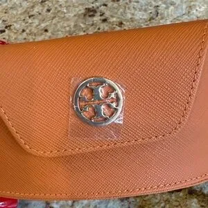 Stylish TORY BURCH sunglasses with a striking orange frame. Perfect for sunny days. It has the T logo in gold on both sides of the frame. It is in excellent condition with no visible scratches on the lens or the frame. It comes with the original case and the dust bag. It is 100% authentic.