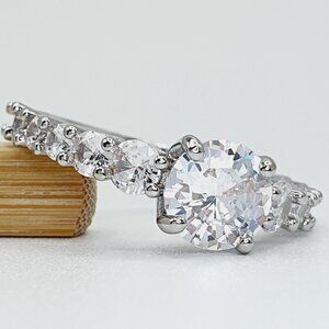 "Engagement Anillos Sparkling Round Cubic Silver Plated Wedding Ring, UNVN12068