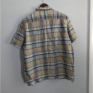 Men's Charter Club Luxury Linen Button Down Tan Blue Plaid Large