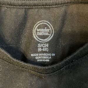 Chic Old Navy floral top with vibrant pink and orange blooms. Classic black Wonder Nation top for versatile style. Perfect for any occasion. Kids girls size small 6 6x. One top is Old Navy, one top is Wonder Nation.