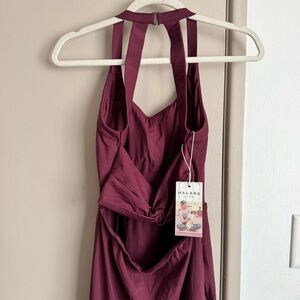 Halara halter neck dress with open back featuring a twist design.