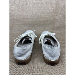 OluKai Men's White Kahu Lace Up Canvas Boat Shoe Size 8 EUR 40. Shoes are in Very Good Used Condition. Little to no wear on the sole. Shipped via USPS Priority Mail.