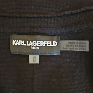 Karl Lagerfeld Knit Blazer Black White Goldtone Buttons Pockets Cotton