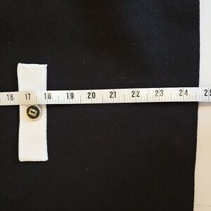 Women's size XL black knit blazer, 1 goldtone button ,2 front pockets with matching buttons. white trim collar, cuffs, pocket flaps. No material tag, but research shows cotton fabric content.