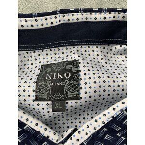 Niko Milano Button Up Shirt Men’s XL Navy Blue Geometric Pattern Long Sleeve NWT