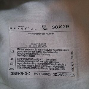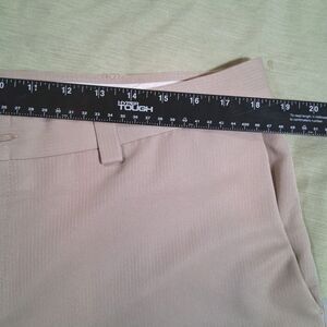 Kenneth Cole Reaction mens pants tan beige with light pinstripes size 38x29 (28) check pics for measurements, excellent condition