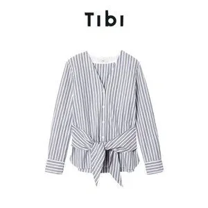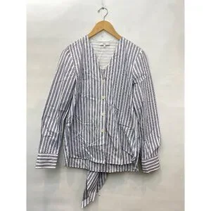 Tibi Liam Stripe V-Neck Shirt with Removable Tie Long Sleeve Button Front Size 2