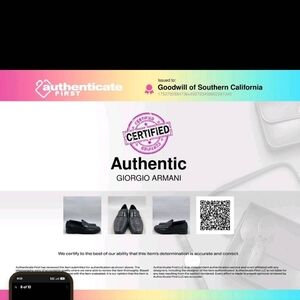 Elegant black loafers with a textured finish. Sleek design for versatile wear. Crafted by Giorgio Armani. I purchased these from a different Goodwill online store. The pictures I took are a little washed out due to the flash but they are beautiful black. you can see the photos that were originally on the Goodwill online store when I purchased them. I love them they are freaking slick but too big and I can't wear them without wedges inside. Happy shopping!