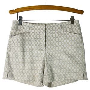 WHBM tan white geometric preppy trouser chino shorts 2