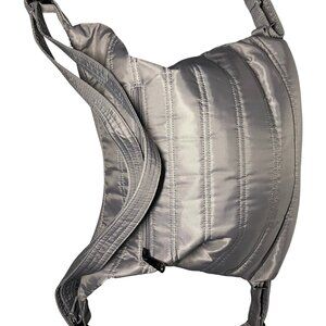 Practical and stylish Lug Zipliner crossbody bag in a sleek gray quilted nylon design.
