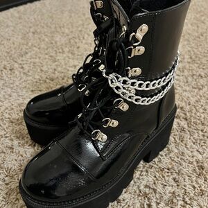 Stylish Chrome Hearts glasses. Black frames with gold accents. Unique design with cross details.