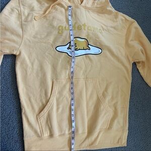 The Sanrio Gudetama The Lazy Egg Sweater in size L is a collectible item featuring the popular character Gudetama from the Japanese anime and manga franchise Sanrio. This sweater is a unique addition to any fan's collection, showcasing the adorable and lazy egg character in a fun and quirky design. Perfect for fans of the Sanrio brand, this sweater is a must-have for anyone looking to add a touch of whimsy to their wardrobe. Like new condition.