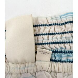 Waistband: Smocked elastic with a striped drawcord and metal tips