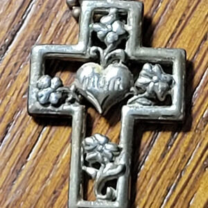 Vintage Estate Mom Cross Necklace Signed Razza Silver Tone 24"