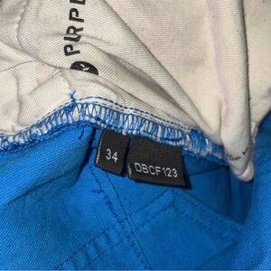 USED PURPLE BRAND Blue Directoire Crackle Paint Foil Multicolor Designer Skinny Jeans Size 34 NWT - 100% Authentic. Condition is Brand new with tags.