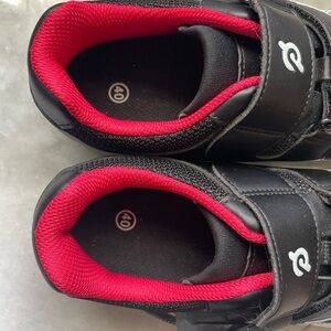 Comfortable cycling sneakers with a black base and red detail. Unisex, Ideal for peloton cycling on bike.