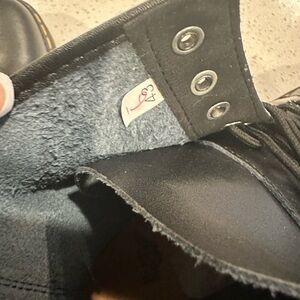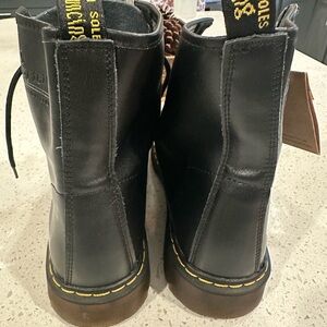 Sleek black leather boots with signature yellow stitching. Durable and stylish for everyday wear.