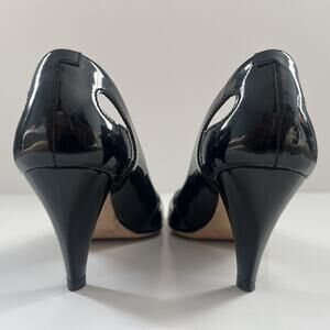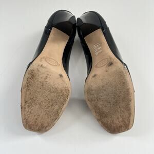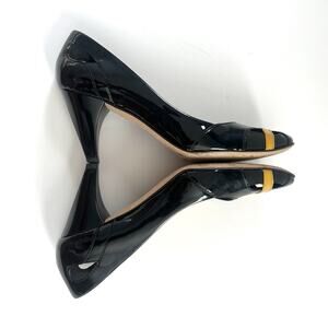 Tod's Women Black Yellow Band Patent Leather Square Toe Cut Out Heels 36 / 6