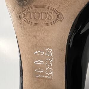 Tod's Women Black Yellow Band Patent Leather Square Toe Cut Out Heels