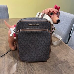 Chic black sequin bucket bag by Badgley Mischka. Features gold accents. Ideal for stylish evenings. New with tags