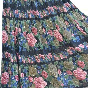 90s Vintage Floral Skirt - Long Crinkled Cotton Gauze Skirt - Rose Print - Draws