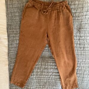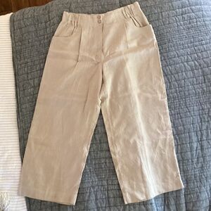 This is a pair of high waisted Sarah pants from Notperfectlinen with an additional 2 inches added to the length. They’ve been worn only a few times, gently washed and hung to dry. The fabric is a heavyweight linen and has a beautiful texture. I love this style and have quite a few of these pants in this heavier linen, but they are just a bit too short on me. They are in EUC.